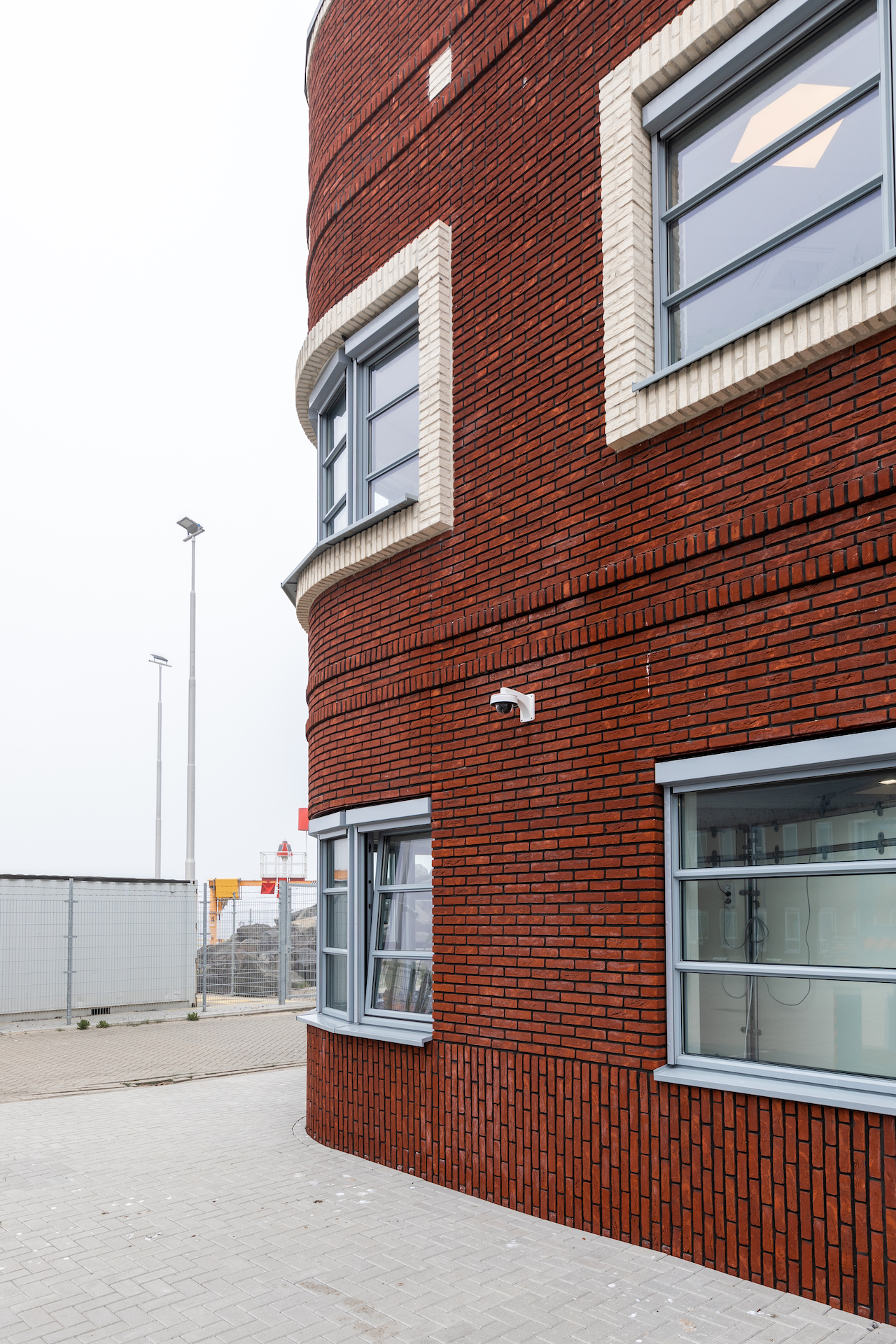 In opdracht van aannemer Friso Bouwgroep bracht MetselCompany Volendam de isolatie aan, verlijmde de kalkzandstenen binnenmuren en metselde de gedetailleerde buitenmuren van het pand. Het kantoor is ontworpen met een moderne interpretatie van een jaren ’20 stijl, en sluit naadloos aan bij het naastgelegen Eneco-gebouw. Binnen het project is gebruikgemaakt van metselverbanden zoals wildverband en staand verband, met als hoogtepunt de ronding in de voorgevel. Het metselen van ronde vormen is een bekende uitdaging in het vak, maar is door onze vakmensen met precisie en efficiëntie uitgevoerd.