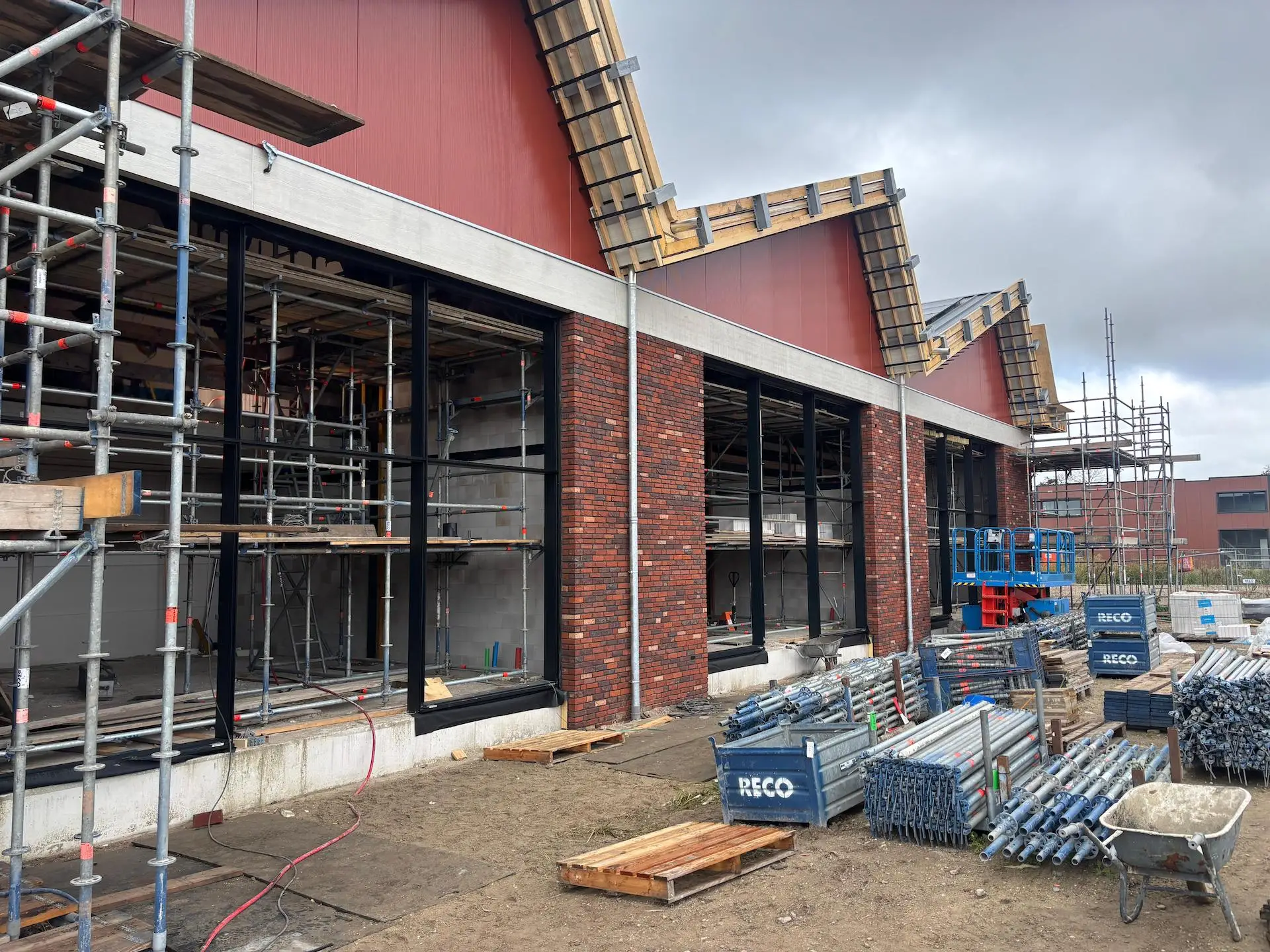 In opdracht van UBA Bouw verzorgt MetselCompany Volendam het isoleren achter het metselwerk, de gevelbekleding met een speciaal ontworpen metselverband, en het lijmwerk van winkelscheidende muren. De architect koos voor een wildverband met lange, korte, hoge en lage stenen, wat de gevel een unieke en herkenbare uitstraling geeft.